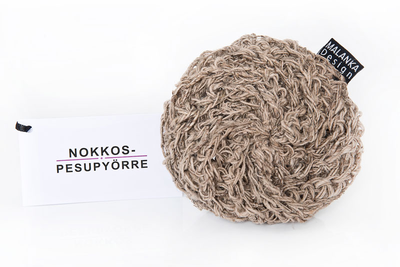 NOKKOSPESUPYÖRRE on valmistettu nepalilaisesta, käsinkehrätystä värjäämättömästä 100 % nokkoslangasta. Lanka on täysin vegaaninen eikä sen valmistuksessa ole käytetty kemikaaleja. Luontaisen antibakteerisen ominaisuutensa ansiosta nokkoslanka soveltuu erinomaisesti pesutuotteiden materiaaliksi.